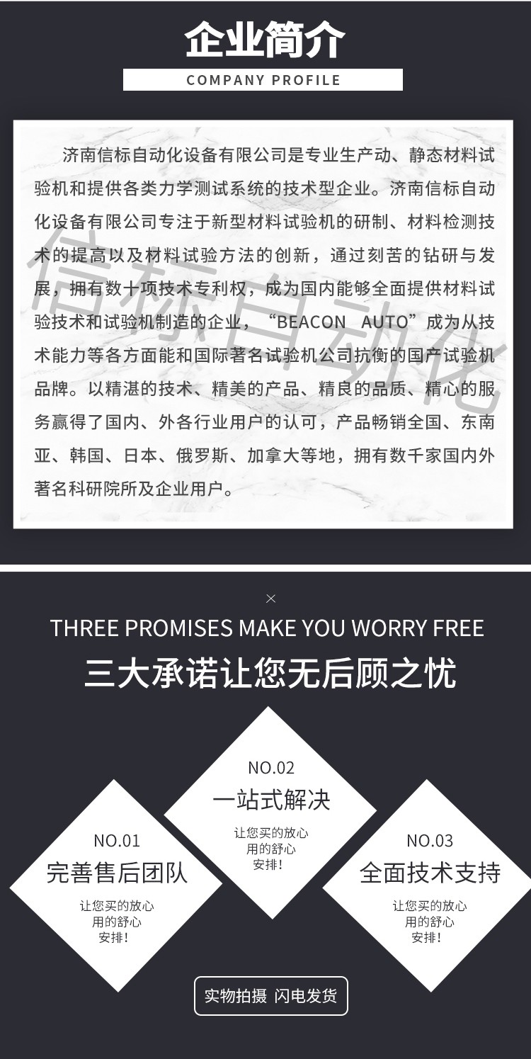 濟(jì)南信標(biāo)自動(dòng)化設(shè)備有限公司主要生產(chǎn):動(dòng)靜態(tài)萬(wàn)能疲勞試驗(yàn)機(jī),接骨板彎曲試驗(yàn)機(jī),縫合線拉伸疲勞試驗(yàn)機(jī),髖膝關(guān)節(jié)磨損試驗(yàn)機(jī),電子萬(wàn)能試驗(yàn)機(jī)、液壓萬(wàn)能試驗(yàn)機(jī)、巖石三軸、四軸,電液拉力試驗(yàn)機(jī),材料試驗(yàn)機(jī),高低溫蠕變,高低頻疲勞,拉伸、扭轉(zhuǎn)、杯突等二十多個(gè)系列兩千多個(gè)的品種。