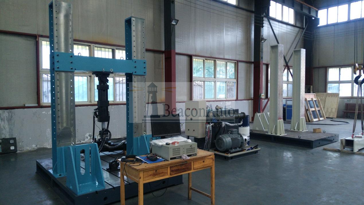 該系列產(chǎn)品具有輸出力范圍廣,控制精度高,使用方便,可靠性高等特點(diǎn)。該系統(tǒng)在研制、開(kāi)發(fā)過(guò)程中吸取國(guó)際先進(jìn)電液伺服控制技術(shù),結(jié)合國(guó)內(nèi)用戶的實(shí)際使用狀況設(shè)計(jì)而成。伺服作動(dòng)器、伺服動(dòng)力液壓站、力加載框架等關(guān)鍵部件為我公司設(shè)計(jì)制造,伺服閥、傳感器、密封件等關(guān)鍵外購(gòu)件均選用國(guó)際、國(guó)內(nèi)同類產(chǎn)品的著名品牌產(chǎn)品,大大提高了系統(tǒng)的穩(wěn)定性和可靠性,試驗(yàn)機(jī)的整體性能與國(guó)際先進(jìn)產(chǎn)品技術(shù)水平相當(dāng)。 該試驗(yàn)系統(tǒng),既能低周疲勞試驗(yàn)、程序控制疲勞試驗(yàn),也能進(jìn)行靜態(tài)的恒速率、恒應(yīng)變、恒應(yīng)力控制下的試驗(yàn)和各種常規(guī)的力學(xué)性能試驗(yàn),還可進(jìn)行斷裂力學(xué)試驗(yàn),自然力量模擬試驗(yàn),如地震、風(fēng)浪等。根據(jù)需要也可以進(jìn)行部分的工況模擬等,因此有著其它任何種類的試驗(yàn)機(jī)所不能比擬的優(yōu)勢(shì); 在實(shí)際測(cè)試方面我們有針對(duì)結(jié)構(gòu)試驗(yàn)而設(shè)計(jì)的大噸位作動(dòng)器,作動(dòng)器形式有單出桿和雙出桿兩種結(jié)構(gòu)形式,輸出力范圍從100kN到10000kN,行程可根據(jù)用戶實(shí)際需求而定,作動(dòng)器標(biāo)準(zhǔn)行程200--500mm(±100mm/±250mm),根據(jù)結(jié)構(gòu)試驗(yàn)要求可配置不同規(guī)格的作動(dòng)器,廣泛應(yīng)用于車輛車架,、復(fù)合結(jié)構(gòu)件材料的靜態(tài)力學(xué)性能試驗(yàn),包括拉伸、壓縮、三點(diǎn)四點(diǎn)彎曲試驗(yàn)、;也可以進(jìn)行結(jié)構(gòu)件的疲勞試驗(yàn),如長(zhǎng)平衡桿,轉(zhuǎn)臂,花鍵軸等。從簡(jiǎn)單的靜態(tài)結(jié)構(gòu)試驗(yàn)到原尺寸大型構(gòu)件路普模擬試驗(yàn),從單通道試驗(yàn)到大型構(gòu)件試驗(yàn)室配置,從整車車身到三軸橡膠套試驗(yàn),該系列設(shè)備均可為你提供極大的幫助,可以助你驗(yàn)證新概念、開(kāi)發(fā)更新、更有效、更經(jīng)濟(jì)的土木材料和結(jié)構(gòu)。 汽車配件三角臂反復(fù)加載疲勞試驗(yàn)機(jī)主要組成部分有: 1.自平衡門式反力框架、1套 2.伺服作動(dòng)器:20KN雙出桿作動(dòng)器2只; 3.伺服動(dòng)力液壓站;大流量遠(yuǎn)程控制伺服液壓系統(tǒng),包括分油閥塊和管路。 4.?dāng)?shù)據(jù)采集控制系統(tǒng):三多通道靜載控制器,包括擴(kuò)展采集和軟件 5.各路力傳感器和位移傳感器 6. 根據(jù)需要配置各種球鉸支座 汽車配件三角臂反復(fù)加載疲勞試驗(yàn)機(jī)主要技術(shù)指標(biāo) 1l最大垂向負(fù)荷: 拉壓雙向20kN x1 2l最大橫向負(fù)荷: 拉壓雙向20kN x1 3l試驗(yàn)力精度: ±0.5%; 4l試驗(yàn)力測(cè)量范圍: 2%~100%FS(全程不分檔) 5l試驗(yàn)力分辨率: 500000碼,且全程分辨率不變 6l水平/垂向測(cè)試頻率: 0.1-15hz (15hz 對(duì)應(yīng)5mm) 7l垂向作動(dòng)器行程: ±100mm 8l橫向作動(dòng)器行程: ±100mm 9l位移分辨率: 0.001mm; 10l位移測(cè)量精度: ±0.5%; 11l進(jìn)口內(nèi)置式位移傳感器精度: 優(yōu)于±0.1%; 12l過(guò)載保護(hù): 105%過(guò)載保護(hù)(無(wú)變形、無(wú)機(jī)械損傷) 13l整機(jī)噪聲: 不超過(guò)70dB 14l測(cè)力方式:采用高精度負(fù)荷傳感器測(cè)力 美國(guó) 15 控制方式:液壓加載,電液伺服閉環(huán)控制,屏幕直接顯示試驗(yàn)結(jié)果 16 液壓動(dòng)力源:封閉靜音結(jié)構(gòu) 可移動(dòng)式 17 管路和分油器:適應(yīng)場(chǎng)地結(jié)構(gòu)的高壓H型膠管及接頭 18 遠(yuǎn)程:遠(yuǎn)程升降控制,遠(yuǎn)程伺服動(dòng)力源控制 19 總線:多級(jí)多路輸出輸入線路總裝 更多汽車配件三角臂反復(fù)加載疲勞試驗(yàn)機(jī)資料請(qǐng)電話聯(lián)系我們。