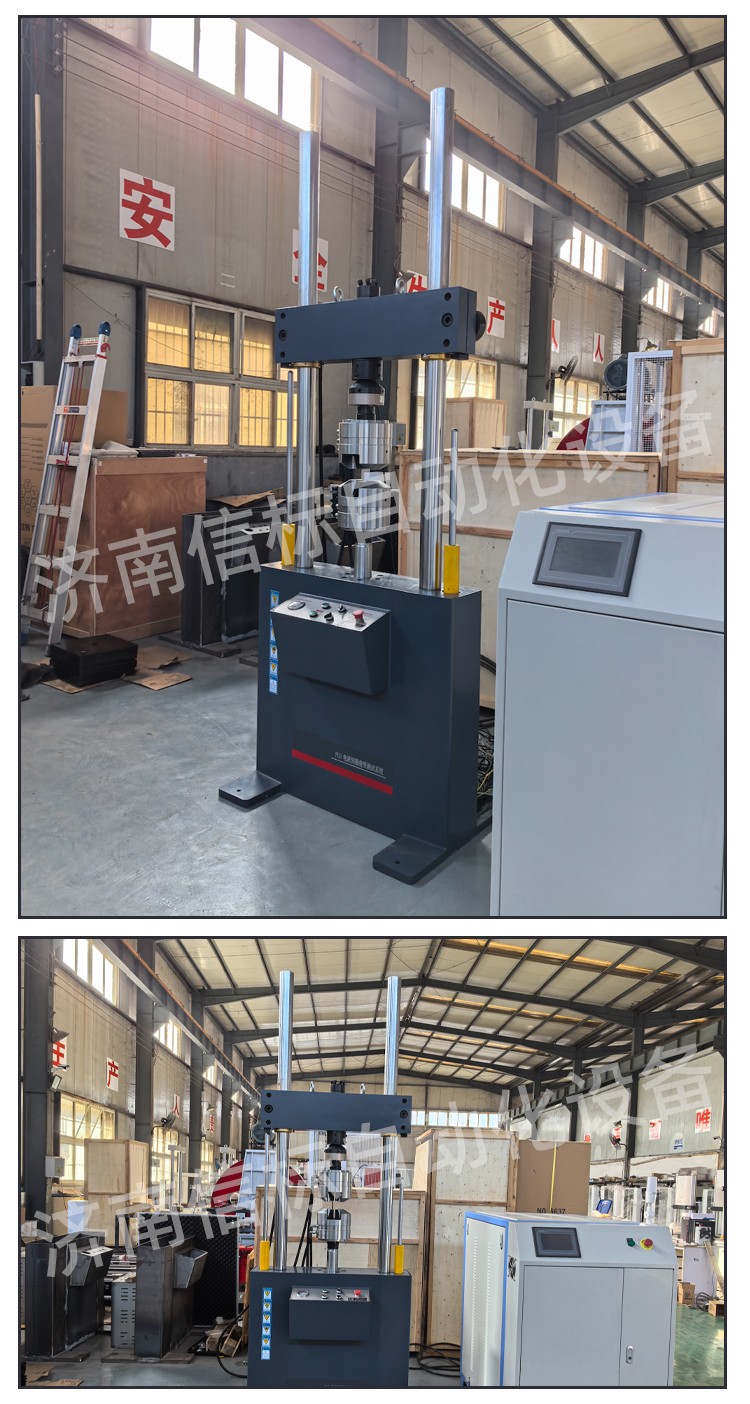 主機 主機為雙立柱加橫梁底座(立柱表面電鍍硬鉻)框架式結(jié)構(gòu),伺服直線作動器下置(或者上置)結(jié)構(gòu)。主機作用是提供試樣連接接口,接受程序指令完成試樣的加載。其突出特點如下: 4.1.1主機為雙立柱框架式結(jié)構(gòu),橫梁采用液壓油缸控制升降、液壓缸控制夾緊式結(jié)構(gòu),使試驗調(diào)整、操控方便。特殊的液壓油路設(shè)計既可以保證試驗的穩(wěn)固可靠,可以在非試驗狀態(tài)時橫梁保持鎖止不動。 4.1.2橫梁具有很高的剛度和強度。同時造型具有立體感,美觀大方。 4.1.3橫梁升降、鎖緊油缸的密封元件采用進口產(chǎn)品,品質(zhì)可靠,結(jié)構(gòu)獨特。 4.1.4立柱外表面采用電鍍硬鉻處理,進一步提高外形的美觀程度,同時提高防腐蝕能力。 4.1.5橫梁操控(升降、夾緊)驅(qū)動模塊采用高品質(zhì)液壓元件集成,控制臺設(shè)置符合人機工程學(xué)原理設(shè)計設(shè)計的操作臺,便于試驗者操作。 4.1.6伺服直線作動器與工作臺剛性連接,內(nèi)置非接觸式高頻響LVDT位移傳感器,外置國產(chǎn)航空品質(zhì)伺服閥,7Mpa下流量為58L/min。負荷傳感器采用Vishay世銓試驗機專用傳感器。 4.1.7設(shè)計由精度不大于5u國產(chǎn)溫州黎明精密濾油器以及具有消脈、蓄能功能的進回油路蓄能器組成的中繼濾油穩(wěn)壓模塊。 4.1.8單元化、標(biāo)準(zhǔn)化、模塊化設(shè)計的伺服直線作動器具有低阻尼、高響應(yīng)、高壽命、大間隙設(shè)計的特點,設(shè)計理念與MTS公司等同。作動器的密封元件全部采用進口伺服作動器專用高速密封元件,加之作動器活塞桿的支撐打破傳統(tǒng)設(shè)計,采用非金屬支撐、大間隙設(shè)計,具有高速不燒結(jié)自潤滑的特點。