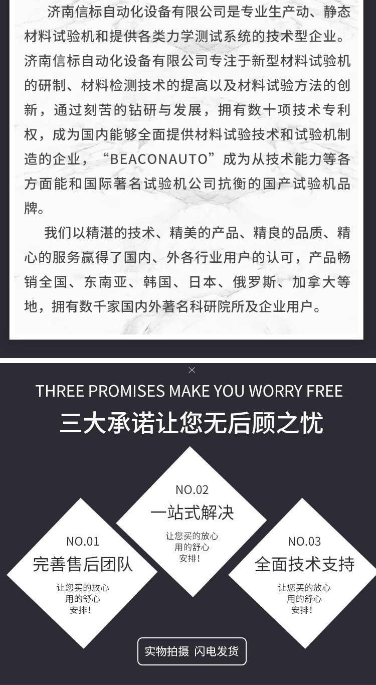 濟南信標自動化設備有限公司主要生產:動靜態(tài)萬能疲勞試驗機,接骨板彎曲試驗機,縫合線拉伸疲勞試驗機,髖膝關節(jié)磨損試驗機,電子萬能試驗機、液壓萬能試驗機、巖石三軸、四軸,電液拉力試驗機,材料試驗機,高低溫蠕變,高低頻疲勞,拉伸、扭轉、杯突等二十多個系列兩千多個的品種。