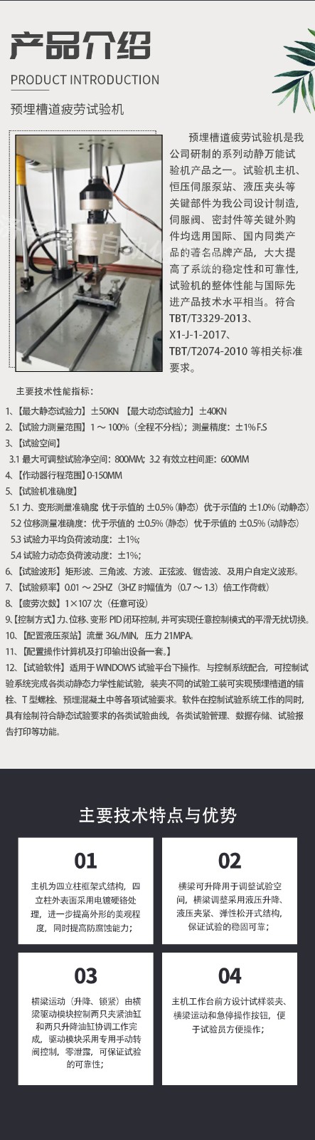 電液伺服接觸網(wǎng)預(yù)埋槽道疲勞壽命試驗(yàn)機(jī)