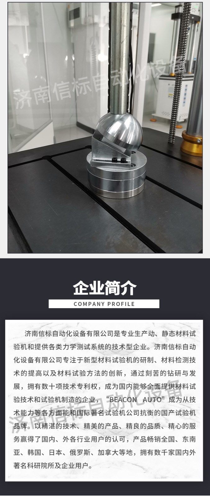 濟南信標自動化設(shè)備有限公司主要生產(chǎn):動靜態(tài)萬能疲勞試驗機,接骨板彎曲試驗機,縫合線拉伸疲勞試驗機,髖膝關(guān)節(jié)磨損試驗機,電子萬能試驗機、液壓萬能試驗機、巖石三軸、四軸,電液拉力試驗機,材料試驗機,高低溫蠕變,高低頻疲勞,拉伸、扭轉(zhuǎn)、杯突等二十多個系列兩千多個的品種。