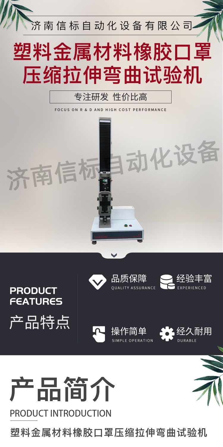 金屬材料壓縮彎曲實(shí)驗(yàn)口罩塑料拉伸強(qiáng)度試驗(yàn)機(jī)主要功能及特點(diǎn): 1、主機(jī): 1.1調(diào)速系統(tǒng)采用伺服電機(jī)和自主研發(fā)減速系統(tǒng),性能穩(wěn)定可靠,具有過流、過壓、過載等保護(hù)裝置。調(diào)速范圍可達(dá)0.05~500mm/min。 1.2傳動(dòng)部分采用圓弧同步齒形帶,精密絲杠副傳動(dòng),傳動(dòng)平穩(wěn),噪音低,傳動(dòng)效率高。 1.3萬向節(jié)采用十字插銷結(jié)構(gòu),而且具有擺角限制功能,一方面便于試樣夾持,保證試驗(yàn)同心度,另一方面很好的消除了不規(guī)則試樣對(duì)傳感器的影響。 2、控制系統(tǒng)、操作軟件及數(shù)據(jù)處理系統(tǒng) 2.1計(jì)算機(jī)控制系統(tǒng),具有集成度高、性能穩(wěn)定、調(diào)整方便等優(yōu)點(diǎn)。可以對(duì)實(shí)驗(yàn)數(shù)據(jù)進(jìn)行實(shí)時(shí)采集,對(duì)實(shí)驗(yàn)特性曲線實(shí)現(xiàn)實(shí)時(shí)動(dòng)態(tài)顯示,試驗(yàn)數(shù)據(jù)文件能以Access常用數(shù)據(jù)庫或SQLserve大型數(shù)據(jù)庫的方式保存,方便實(shí)現(xiàn)客戶的資源共享及網(wǎng)絡(luò)管理,以及用戶的再分析。對(duì)于用戶自定義的各種word2000報(bào)表,該軟件可輕松實(shí)現(xiàn)訪問,解決了不同用戶或同一用戶在不同時(shí)期對(duì)試驗(yàn)報(bào)表有不同需要的難題。該軟件可處理試驗(yàn)力、位移、時(shí)間、變形的原始數(shù)據(jù)及由此派生的曲線。