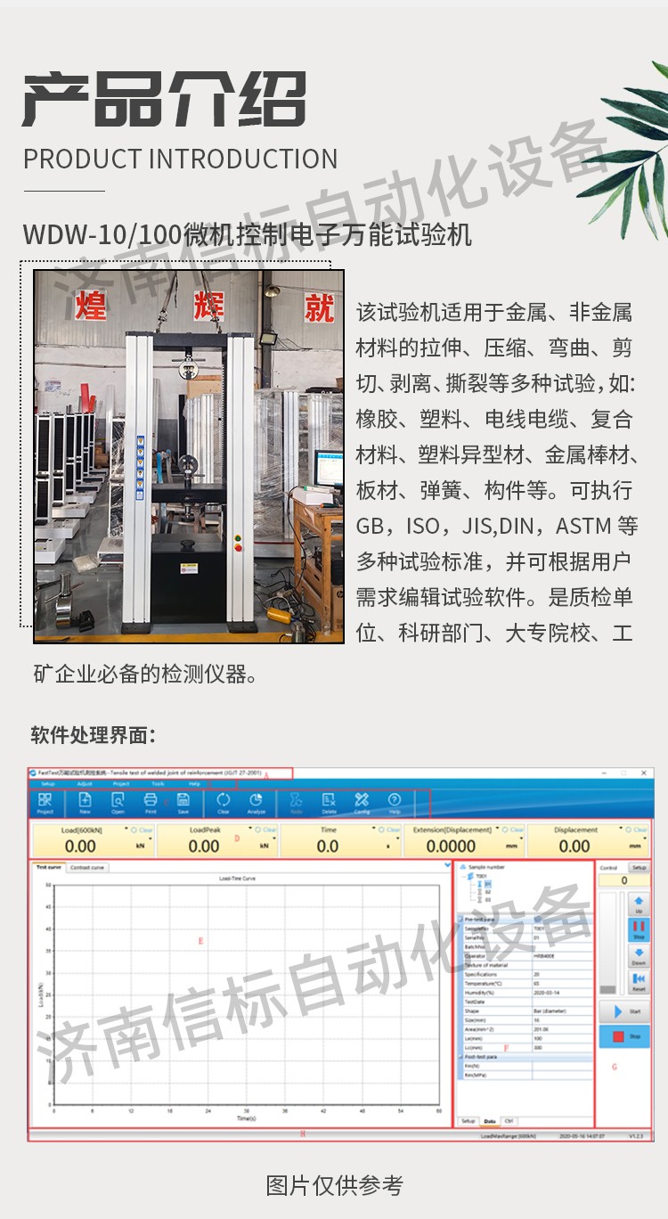 該試驗(yàn)機(jī)適用于金屬、非金屬材料的拉伸、壓縮、彎曲、剪切、剝離、撕裂等多種試驗(yàn),如:橡膠、塑料、電線電纜、復(fù)合材料、塑料異型材、金屬棒材、板材、彈簧、構(gòu)件等。可執(zhí)行GB,ISO,JIS,DIN,ASTM等多種試驗(yàn)標(biāo)準(zhǔn),并可根據(jù)用戶需求編輯試驗(yàn)軟件。是質(zhì)檢單位、科研部門、大專院校、工礦企業(yè)必備的檢測(cè)儀器。 二、測(cè)量參數(shù): 1. 最大試驗(yàn)力: 10/20/30/50kN 2. 試驗(yàn)力測(cè)量范圍: 0.4%--100%。 3. 試驗(yàn)力示值精度:優(yōu)于示值±1% 4. 試驗(yàn)力分辨力:1/500000 5. 橫梁位移測(cè)量精度:分辨率高于0.0025mm 6. 變形測(cè)量精度: ±0.5% 7. 試驗(yàn)速度范圍:0.0002—500mm/min,無(wú)級(jí)調(diào)速 8. 速度控制精度:±1%(0.0002~50mm/min); ±0.5%(50~3500mm/min) 9. 恒力、恒變形、恒位移控制范圍: 0.2%-100%FS 10.恒力、恒變形、恒位移控制精度: 設(shè)定值<10%FS時(shí),設(shè)定值的±1.0%以內(nèi) 設(shè)定值≥10%FS時(shí),設(shè)定值的±0.1%以內(nèi) 11. 變形速率控制精度: 速率<0.05%FS時(shí)為±2.0%設(shè)定值內(nèi) 速率≥0.05%FS時(shí)為±0.5%設(shè)定值內(nèi) 12.試驗(yàn)空間: A.拉伸空間:1000mm B.壓縮空間:1100mm C.寬度:450mm 13.下工作臺(tái):450*250 14. 壓盤尺寸:φ100 mm 15. 整機(jī)電源:單相,220V±10%,50Hz,功率:750 W 16. 工作環(huán)境:室溫—35℃,相對(duì)濕度不超過(guò)80% 17. 主機(jī)尺寸: 870×730×1750mm 18. 重量:400 kg 三、產(chǎn)品配置: 1、主機(jī) 一套 2、松下A7全數(shù)字伺服電機(jī)及伺服驅(qū)動(dòng)器; 一套 3、高精度負(fù)荷傳感器; 5kn/1kn/500N/200/ 各一支 4、Hiwin精密滾珠絲杠; 2支 5、光電編碼器(2500線,內(nèi)置); 1支 6、夾具:滿足海綿/汽車座椅所需工裝 1套(有多種)