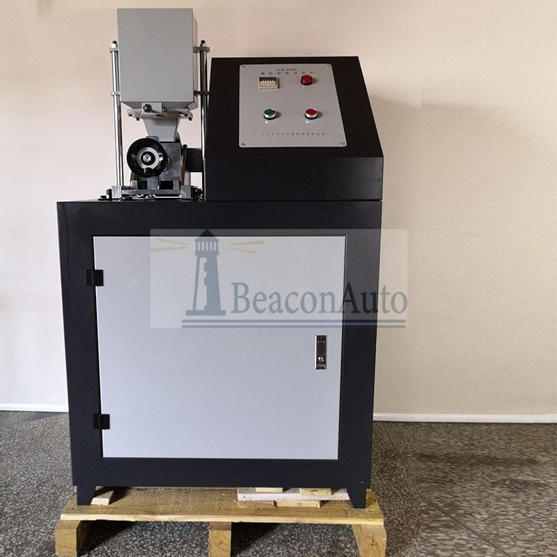 3.試驗(yàn)機(jī)的轉(zhuǎn)速及控制系統(tǒng) 試驗(yàn)機(jī)的轉(zhuǎn)速通過面板上變頻器旋鈕調(diào)整。一般推薦使用標(biāo)準(zhǔn)要求的(245轉(zhuǎn)/分)。 本機(jī)控制部分是由霍爾開關(guān)作為傳感器,其電源ZN-48智能數(shù)顯計(jì)數(shù)器供給,電壓約為12V左右。傳感器輸出的脈沖信號送至ZN-48智能數(shù)顯計(jì)數(shù)器。調(diào)整ZN-48計(jì)數(shù)器的預(yù)置“停車轉(zhuǎn)數(shù)”,當(dāng)試驗(yàn)機(jī)達(dá)到此預(yù)置轉(zhuǎn)數(shù)時(shí), ZN-48計(jì)數(shù)器執(zhí)行繼電器動(dòng)作,切斷試驗(yàn)機(jī)的控制電路電源,達(dá)到自動(dòng)控制停機(jī)的目的。 四、橡膠輪式磨損試驗(yàn)機(jī)試驗(yàn)機(jī)的安裝、調(diào)整及其使用前的準(zhǔn)備: 本機(jī)結(jié)構(gòu)緊湊,又有穩(wěn)定的底座,運(yùn)轉(zhuǎn)平穩(wěn),機(jī)體下面是可調(diào)減震墊腳,通過調(diào)整四個(gè)墊腳的高度,可以調(diào)整試驗(yàn)機(jī)水平度。為確保運(yùn)轉(zhuǎn)平穩(wěn),消除振動(dòng), 要求試驗(yàn)機(jī)水平度<0,05/1000毫米.同時(shí)能保證夾具橫桿加載時(shí)處于水平位置。 試驗(yàn)機(jī)就位后,先用煤油把機(jī)器各部件的防銹油脂及污垢擦洗干凈,切忌非潤滑油及其它雜質(zhì)進(jìn)入各軸承中。然后盤車,使轉(zhuǎn)動(dòng)部份動(dòng)作靈活即可。 接通電源(三相四線供電,黑色線為0線),ZN-48計(jì)數(shù)器得電,面板指示亮(即計(jì)數(shù)器數(shù)字亮)。 設(shè)置“停車轉(zhuǎn)數(shù)”,出廠預(yù)置1000轉(zhuǎn)。按照以下方法可重新設(shè)置停車轉(zhuǎn)數(shù):按下位選鍵( )幾秒,直到上邊第一位數(shù)碼管呈閃爍狀態(tài),按增加鍵(▲),設(shè)定此數(shù)值。再按位選鍵( ),上邊第二位數(shù)碼管呈閃爍狀態(tài),按增加鍵(▲),設(shè)定此數(shù)值。依此類推,設(shè)定第三、第四位數(shù)值。此時(shí)數(shù)碼管還在閃爍,8秒后,閃爍停止,設(shè)定值自動(dòng)存入機(jī)內(nèi)。設(shè)置結(jié)束。ZN-48計(jì)數(shù)器最大設(shè)置的轉(zhuǎn)數(shù)為99999999。ZN-48計(jì)數(shù)器還可實(shí)現(xiàn)其他功能,請參考計(jì)數(shù)器說明書相關(guān)內(nèi)容。 將空氣開關(guān)撥到“開”的位置,主機(jī)控制電路得電。此時(shí)可調(diào)整變頻器到試驗(yàn)轉(zhuǎn)速,撥動(dòng)開關(guān),主機(jī)電機(jī)運(yùn)轉(zhuǎn),開始試驗(yàn)。 當(dāng)試驗(yàn)轉(zhuǎn)數(shù)達(dá)到預(yù)置停車轉(zhuǎn)數(shù)時(shí),ZN-48計(jì)數(shù)器自動(dòng)控制停機(jī)。繼續(xù)試驗(yàn),請先按下計(jì)數(shù)器復(fù)位鍵( ),才能重新啟動(dòng)試驗(yàn)機(jī)。 結(jié)束試驗(yàn)后,請切斷電源。再清理試驗(yàn)機(jī)。 五、橡膠輪式磨損試驗(yàn)機(jī)試驗(yàn)機(jī)試驗(yàn)操作方法及注意事項(xiàng): 1.試驗(yàn)前準(zhǔn)備: (1)修理橡膠輪 用320#金相水砂紙剪成35X67(毫米)大小,包貼在標(biāo)準(zhǔn)試樣上,先檢查一下橡膠輪緣上是否貼有砂子和臟物,用清水沖洗橡膠輪,然后把包有水砂紙的試樣裝在夾具上并安裝在夾具橫桿臂上,在砂漿槽箱里加0.5千克的水,加上1千克的砝碼,放下夾具橫桿,使橡膠 輪與砂紙緊貼,開動(dòng)機(jī)器,以240轉(zhuǎn)/分轉(zhuǎn)速轉(zhuǎn)動(dòng),計(jì)數(shù)器予置在100轉(zhuǎn),轉(zhuǎn)100轉(zhuǎn)后機(jī)器自動(dòng)停止,橡膠輪修整完畢。然后卸載,取出砂紙和夾具,用水將泥漿槽沖洗干凈。經(jīng)修整過的橡膠輪其直徑減小約0.1毫米。 試驗(yàn)時(shí)橡膠輪累積運(yùn)行10000轉(zhuǎn)以后應(yīng)將橡膠輪重新修整。經(jīng)驗(yàn)表明,超過10000轉(zhuǎn)以后對試驗(yàn)結(jié)果的重現(xiàn)性將產(chǎn)生不利的影響。 值得注意的是,橡膠輪從制造廠出廠后,必須經(jīng)過在磨床上修磨到一定的尺寸,每一個(gè)橡膠輪的直徑和寬度應(yīng)該仔細(xì)地加以測定,橡膠輪緣必須沒有缺陷而且硬度均勻。 (2)橡膠輪硬度測定: 橡膠輪是由三種邵爾硬度橡膠輪緣制成,橡膠輪緣的名義邵爾硬度50、60、70,實(shí)際值需要用邵爾硬度計(jì)測量。硬度計(jì)固定在一個(gè)垂直地立在砂漿罩上面導(dǎo)柱的底部。橡膠輪修正完畢后,將硬度計(jì)壓頭 (撞針)輕輕地接觸膠輪,加載后約5秒鐘讀取硬度值。橡膠輪緣硬度應(yīng)該在輪緣約八等分的位置上進(jìn)行測定,取八個(gè)讀數(shù)的平均值為實(shí)測硬度. 2.試驗(yàn)操作程序 (1)預(yù)磨 每次試驗(yàn)開始之前,泥漿槽必須徹底刷洗以消除上次試驗(yàn)用的砂漿的任何遺留物,每個(gè)試樣要去磁,清除靜電,在酒精或丙酮中浸洗,然后用吹風(fēng)機(jī)吹干,在萬分之一精度的天平上稱重,測得試樣重量,而后安裝在試樣夾具上。 然后在砂漿槽中倒入940~1000ml去離子水和1.5㎏石英砂(50~70目)或用戶選定的其他磨料,蓋好有機(jī)玻璃罩,開動(dòng)機(jī)器先攬拌50轉(zhuǎn)停機(jī),而后加上所需要砝碼,將計(jì)數(shù)器設(shè)定在1000(約560米)轉(zhuǎn)上,輕輕放下載荷,將試樣與橡膠輪輕輕地接合,開機(jī)預(yù)磨,以產(chǎn)生一個(gè)予制磨痕,為消除試樣表面質(zhì)量和受力不均帶來的試驗(yàn)誤差,經(jīng)過預(yù)磨試樣表面產(chǎn)生一個(gè)新鮮磨痕,預(yù)磨一直繼續(xù)到橡膠輪轉(zhuǎn)到1000轉(zhuǎn)自動(dòng)停車為止。然后抬起